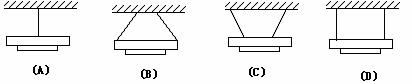 4. 如图吊装日光灯,如果采用下面几种方法,其中绳中拉力最小的是:[ ]