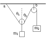 如图所示的装置中,绳子与滑轮的质量不计,摩擦不计,悬点a与b之间的距离大于两轮的直径,两个物体的质量分别为m1和m2,若装置处于静止状态,则 [ ]