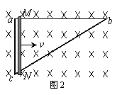 (20分)如图2所示,直角三角形导线框abc固定在匀强磁场中,ab是一段长为L、电阻为R的均匀导线,ac和bc的电阻可不计,ac长度为
