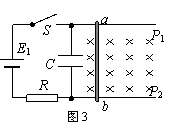 3.(20分)如图3所示,水平面中的光滑平行导轨P1、P2相距l=50cm,电池电动势