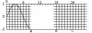 图为一横波发生器的显示屏,可以显示出波由0点从左向右传播的图像,屏上每一小格长度为1cm。在t=0时刻横波发生器上能显示的波形如图所示。因为显示屏的局部故障,造成从水平位置A到B之间(不包括A、B两处)的波形无法被观察到(故障不影响波在发生器内传播)。此后的时间内,观察者看到波形相继传经B、C处,在t=5.5秒时,观察者看到B处恰好第三次出现波谷,下列判断错误的是