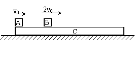 如图所示,C是放在光滑的水平面上的一块木板,木板的质量为3m,在木板的上面有两块质量均为m的小木块A和B,它们与木板间的动摩擦因数均为μ。最初木板静止,A、B两木块同时以方向水平向右的初速度v0和2v0在木板上滑动,木板足够长, A、B始终未滑离木板。求: