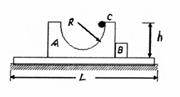 18.(10分)如图所示,长为L的光滑平台固定在地面上,平台中间放有小物体A和B,两者彼此接触. A的上表面是半径为R的半圆形轨道,轨道顶端距台面的高度为h处,有一个小物体C,A、B、C的质量均为m,在系统静止时释放C,已知在运动过程中,A、C始终接触,试求: