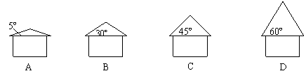 1、一间新房即将建成时要封顶,考虑到下雨时落至房顶的雨滴能尽快地淌离房顶,要设计好房顶的坡度,设雨滴沿房顶下淌时做无初速度无摩擦的运动,那么,如图所示的四种情况中最符合要求的是( )