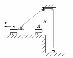 16.(10分)一辆车通过一根跨过定滑轮的轻绳子提升一个质量为m的重物,开始车在滑轮的正下方,绳子的端点A离滑轮的距离是H。车由静止开始向左作匀加速的运动,过了时间t绳子与水平方向的夹角是θ,如图的所示。问:在这个过程中,车对重物做了多少功?