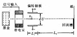 (附加题).喷墨打印机的原理示意图如图所示,其中墨盒可以发出墨汁液滴,此液滴经过带电室时被带上负电,带电多少由计算机按字体笔画高低位置输入信号加以控制.带电后液滴以一定的初速度进入偏转电场,带电液滴经过偏转电场发生偏转后打到纸上,显示出字体.计算机无信号输入时,墨汁液滴不带电,径直通过偏转板最后注入回流槽流回墨盒.