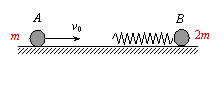 (16分)如图所示,光滑水平面上,质量为2m的小球B连接着轻质弹簧,处于静止;质量为m的小球A以初速度v0向右匀速运动,接着逐渐压缩弹簧并使B运动,过一段时间,A与弹簧分离,设小球A、B与弹簧相互作用过程中无机械能损失,弹簧始终处于弹性限度以内(1)求当弹簧被压缩到最短时,弹簧的弹性势能E.(2)若开始时在小球B的右侧某位置固定一块挡板(图中未画出),在小球A与弹簧分离前使小球B与挡板发生正撞,并在碰后立刻将挡板撤走.设小球B与固定挡板的碰撞时间极短,碰后小球B的速度大小不变、但方向相反。设此后弹簧弹性势能的最大值为Em,试求Em可能值的范围.