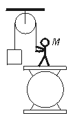 2.如图所示,一个质量为M的人站在台秤上,用跨过定滑轮的绳子,将质量为m的物体自高处放下,当物体以a加速下降(a<g)时,不计一切摩擦,台秤的读数为 ( )