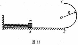 10.(6分)如图11所示,光滑水平面AB与竖直面内半圆形导轨在B点相接,导轨半径为R.一个质量为m的物体将弹簧压缩至A点后由静止释放,在弹力作用下物体获得某一向右速度,当它经过B点进入导轨瞬间对导轨的压力为其重力的7倍,之后向上运动恰能完成半圆周运动到达C点.求: