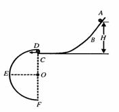 11、(19分)如图所示,ABC和DEF是在同一竖直平面内的两条光滑轨道,其中ABC的末端水平,DEF是半径为r=0.4m的半圆形轨道,其直径DF沿竖直方向,C、D可看作重合。现有一可视为质点的小球从轨道ABC上距C点高为H的地方由静止释放,