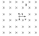 如图所示,在磁感应强度为B的匀强磁场中,以初速度v从图中A点沿垂直磁场方向发射一个正离子,已知离子质量为m,电量为q,不计离子重力,磁场范围足够大。