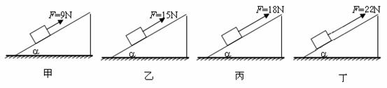 8.一个质量为3kg的物体,被放置在倾角为a=37°的摩擦系数为0.2的固定斜面上,在如图2所示的甲、乙、丙、丁,四种情况下可能处于平衡状态的是: