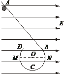 如图4所示,在光滑、绝缘的水平桌面上竖直固定一光滑、绝缘的挡板ABCD,AB段为直线挡板与水平方向成450夹角,BCD段是半径为R的圆弧挡板,挡板处于场强为E的匀强电场中,电场方向与圆直径MN平行.现有一带电量为q、质量为m的小球由静止从挡板内侧上的A点释放,并且小球能沿挡板内侧运动到D点抛出,则