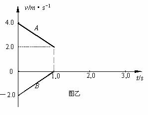 ⑶假设A、B两物体在运动过程中不会相碰,试在图乙中画出A、B在t=1.0s-3.0s时间内的v-t图象.