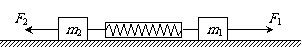 如图所示,两个质量分别为m1=2kg、m2=3kg的物体置于光滑的水平面上,中间用轻质弹簧秤连接。两个大小分别为F1=30N、F2=20N的水平拉力分别作用在m1、m2上,则