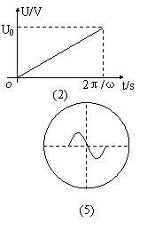C.如果在偏转电极YY′上加上如图⑶所示U=Umsinωt,同时在偏转电极XX′上加上图(2)所示的电压,应观察到一条正弦曲线如图(5)