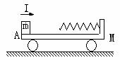 如图,在光滑的水平面上,停着一辆平板小车,小车的质量为M=10kg。在小车左端A处,放有质量为m=5kg的小物体(可视为质点),现给小物体一个I=30N·S的瞬时冲量,物体在平板车上相对于小车向右滑行L=1.5m后被弹回,最后刚好在A点与车保持相对静止。求:(1)物体与平板车间的动摩擦因数μ。(2)弹簧在压缩过程中所具有的最大弹性势能EP。