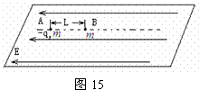 15.如图所示,在与光滑绝缘的水平面上存在一和水平面重合的大小为E且区域足够大的匀强电场,在平行电场线的方向上有两个静止的小球A和B(均可视为质点),两小球的质量均为