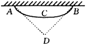 一条质量均匀不可伸长的绳索重为G,A、B两端固定在天花板上,如图中点C施加一竖直向下的力将绳缓慢地拉至D点,在此过程中,绳索AB的重心位置 ( )