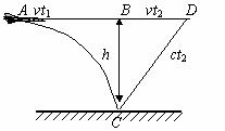 ,设从炸弹爆炸到飞行员听见爆炸声所经过的时间为t2,则由题给条件得t= t1+