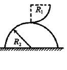 如图,从光滑的1/4圆弧槽的最高点滑下的小物块,滑出槽口时速度为水平方向,槽口与一个半球顶点相切,半球底面为水平,若要使小物块滑出槽口后不沿半球面下滑,已知圆弧轨道的半径为R1,半球的半径为R2,则R1与R2的关系为( )