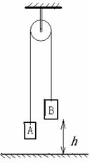 14、如图所示,物体A的质量为m,B的质量为3m,不记滑轮摩擦和绳子的质量,在离地高度为h处,用手托住B静止不动,绳子足够长且没有弹性,A不会碰到滑轮,放手后使B自由下落。求: