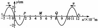 如图所示,两列简谐横波分别沿x轴正方向和负方向传播,两波源S1和S2分别位于x轴上-0.2 m和1.2 m处,两列波的波速均为v=0.4 m/s,两波源的振幅均为A=2 cm.图示为t=0时刻两列的图像(传播方向如图),此刻平衡位置处于x轴上0.2m和0.8m的P、Q两质点刚开始振动.质点M的平衡位置处于x=0.5m处,关于各质点运动情况判断正确的是( )