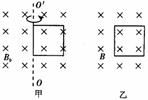 面积为S的两个完全相同的单匝金属线圈分别放置在如图甲、乙所示的磁场中.甲图中是磁感应强度为B0的匀强磁场,线圈在磁场中以周期T绕OO’轴作匀速转动;乙图中的磁场的变化规律为B=B0cos2πt/T,从图示时刻(t=0时刻)起计时,则( )
