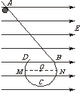 如图所示,在光滑、绝缘的水平桌面上固定放置一光滑、绝缘的挡板ABCD,AB段为直线挡板,BCD段是半径为R的圆弧挡板,挡板处于场强为E的匀强电场中,电场方向与圆直径MN平行。现有一带电量为q、质量为m的小球由静止从挡板内侧上的A点释放,并且小球能沿挡板内侧运动到D点抛出,则 ( )