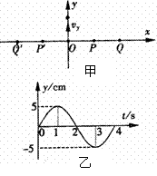 8.如图甲所示,一根水平张紧的弹性长绳上有等间距的Q'、P'、O、P、Q质点,相邻两质点间距离为1m,t=0时刻O质点从平衡位置开始沿y轴正方向振动,并分别产生向左和向右传播的波,O质点振动图象如图乙所示,当O点第一次达到正方向最大位移时刻,P点刚开始振动,则
