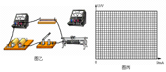 请用表中数据选用适当的标度,在图丙中作出该电阻的U-I曲线,并求出该电阻室温下的阻值: ▲ 。(保留两位有效数字)