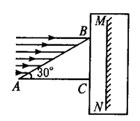 ,MN为平行于BC竖直放置的照相底片,与BC的距离可调,底片放在暗箱中.开始时MN离BC距离为L,一束平行光平行于AC射到AB面上。