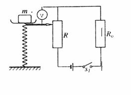 电源电动势为E,内阻为r,限流电阻为R o,弹簧的劲度系数为k,若不计一切摩擦和其他阻力,试求电压表示数Ux与所称物体质量m的关系式。