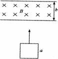 19.(12分)如右图所示,将边长为a、质量为m、电阻为R的正方形导线框竖直向上抛出,穿过宽度为b、磁感应强度为B的匀强磁场,磁场的方向垂直纸面向里.线框向上离开磁场时的速度刚好是进入磁场时速度的一半,线框离开场后继续上升一段高度,然后落下并匀速进入磁场.整个运动过程中始终存在着大小恒定的空气阻力f且线框不发生转动.求:
