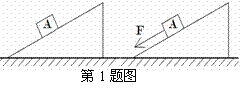 如图所示,斜面固定在水平地面上,先让物体A沿斜面下滑,恰能匀速.后给A一个沿斜面向下的力F,让其加速下滑.设前后两次A与斜面间的摩擦力分别为f1、f2,地面给斜面的支持力分别为N1、N2,则 ( )