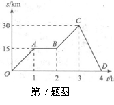 如图是一辆汽车做直线运动的s-t图象,对线段OA、AB、BC、CD所表示的运动,下列说法正确的是( )