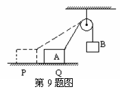 9.如图所示,A与B两个物体用轻绳相连后,跨过无摩擦的定滑轮,A物体在Q位置时处于静止状态,若将A物体移到P位置,仍然能够处于静止状态,则A物体由Q移到P后,作用于A物体上的力中增大的是( )