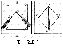 ①图乙中的F与F′两力中,方向一定沿AO方向的是____________________。(2分)