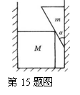 15.(10分)如图所示,质量为m、顶角为α的直角劈和质量为M的正方体放在两竖直墙和水平面问,处于静止状态.若不计一切摩擦,求(1)水平面对正方体的弹力大小(5分);(2)墙面对正方体的弹力大小(5分)。