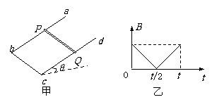如图甲中abcd为导体做成的框架,其平面与水平面成θ角,质量为m的导体棒PQ与ab、cd接触良好,回路的电阻为R,整个装置放于垂直框架平面的变化的磁场中,磁感强度B随时间变化规律如图乙,PQ始终静止,在时间0-t内,PQ受到的摩擦力f的大小变化可能是
