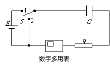(7分)电容器是电学中一种常见的能存储电荷的电子元件。某同学用如下图所示的电路探究一个电容器的充放电规律。图中R是12kΩ的高阻值电阻,串在电路中的数字多用电表调至微安档,并且数字多用电表表笔的正负极可以自动调换。
