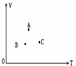 (10分)一定质量的理想气体的三个状态在V-T图上用A,B,C三个点表示,如图所示。试比较气体在这三个状态时的压强pA,pB,pC的大小关系有: