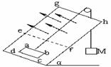 22.(14分)如图光滑斜面的倾角α=30°,在斜面上放置一矩形线框abcd,ab边的边长l1=1m,bc边的边l2=0.6m,线框的质量m=1kg,电阻R=0.1Ω,线框用细线通过定滑轮与重物相连,重物质量M=2kg,斜面上ef线(ef∥gh)的右方有垂直斜面向上的匀强磁场,磁感应强度B=0.5T,如果线框从静止开始运动,当ab边进入磁场时恰好做匀速直线运动,ef线和gh