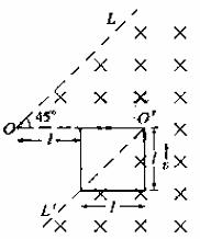 5.如图所示,LOO′L′为一折线,它所形成的两个角∠LOO′和∠OO′L′均为45°。折线的右边有一匀强磁场。其方向垂直于纸面向里。一边长为l的正方形导线框沿垂直于OO′的方向以速度v作匀速直线运动,在t=0的刻恰好位于图中所示位置。以逆时针方向为导线框中电流的正方向,在下面四幅图中能够正确表示电流-时间(I-t)关系的是(时间以I/v为单位)( )
