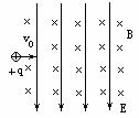 空间存在相互垂直的匀强电场E和匀强磁场B,其方向如图所示.一带电粒子+q以初速度v0垂直于电场和磁场射入,则粒子在场中的运动情况可能是