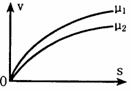 如图所示绘出了轮胎与地面间的动摩擦因数分别为μ1和μ2 时,紧急刹车时的刹车痕迹(即刹车距离 s )与刹车前车速 v 的关系曲线,则μ1和μ2的大小关系为