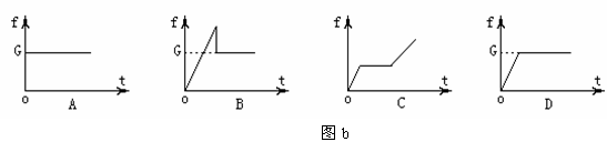 把一重为G的物体,用一个水平的推力F=kt(k为恒量,t为时间)压在竖直的足够高的平整的墙上,如图a所示,从t=0开始物体所受的摩擦力f随t的变化关系是图b中的哪一个?