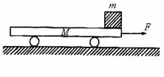的小车停放在光滑水平面上,在小车右端施加一水平恒力F=8N。当小车向右运动速度达到3m/s时,在小车的右端轻放一质量m=2kg的小物块,物块与小车间的动摩擦因数