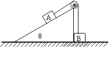 10、如图,一固定的楔形木块,其斜面的倾角为θ=300,另一边与地面垂直,顶上有一定滑轮,一柔软的细线跨过[定滑轮,两端分别与物块A和B连结,A的质量为4m,B的质量为m,开始时将B按在地上不动,然后放开手,让A沿斜面下滑而B上升,物块A与斜面间无摩擦。设当A沿斜面下滑S距离后,细线突然断了。求物块B上升的最大高度。