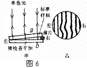 图6所示是用干涉法检查某块厚玻璃的上表面是否平整的装置,检查中所观察到的干涉条纹如图乙所示,则( )